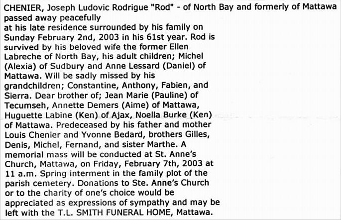 Chénier, Joseph Ludovic Rodrigue (1942-2003)