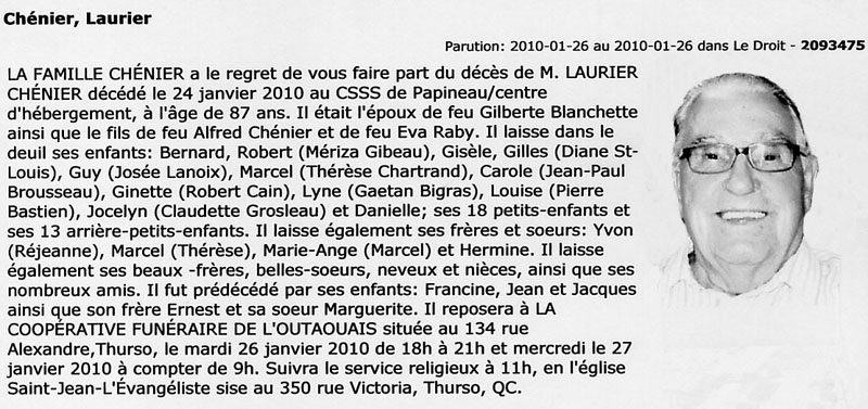 THE DESCENDANTS OF BERTRAND CHESNAY dit LAGARENNE
