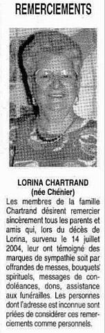 Chartrand, Lorina (Née Chénier) (1925-2004)