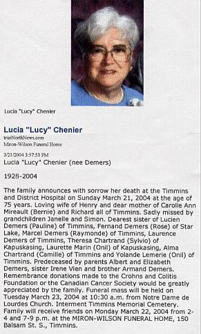 Chenier, Lucia (Lucy) (Née Demers) (1928-2004)