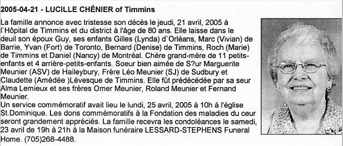 Chénier, Lucille (Née Meunier) (1924-2005)