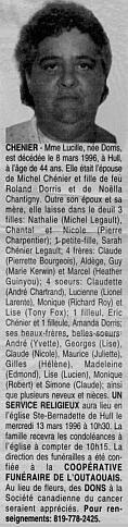 Chénier, Lucille (Née Dorris) (1952-1996)