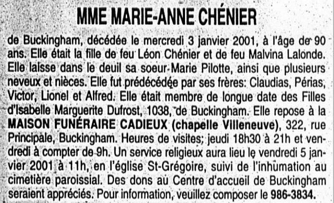 Chénier, Marie-Anne (1910-2001)