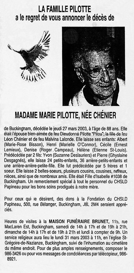 Pilotte, Marie (Née Chénier) (1914-2003)