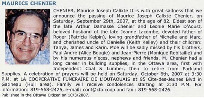 Chenier, Maurice Joseph Calixte (1925-2007)