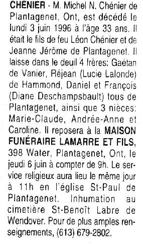 Chénier, Michel N. (1962-1996)