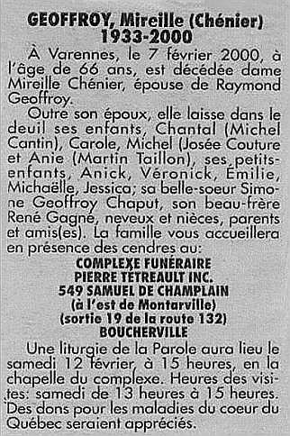 Geoffroy, Mireille (Née Chénier) (1933-2000)