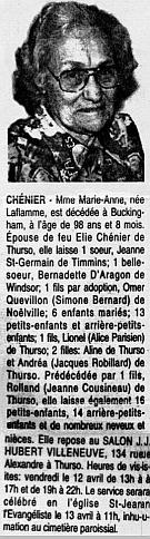 Chénier, Marie Ange (Née Laflamme) (1897-1996)
