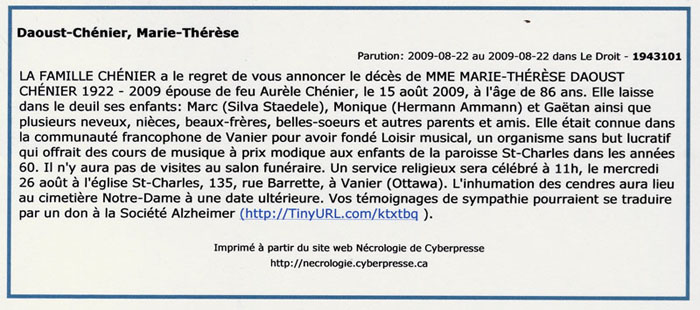 Daoust-Chénier, Marie Thérèse (1922-2009)