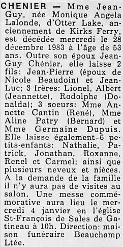 Chénier, Monique Angela (Née Lalonde) (1930-1984)