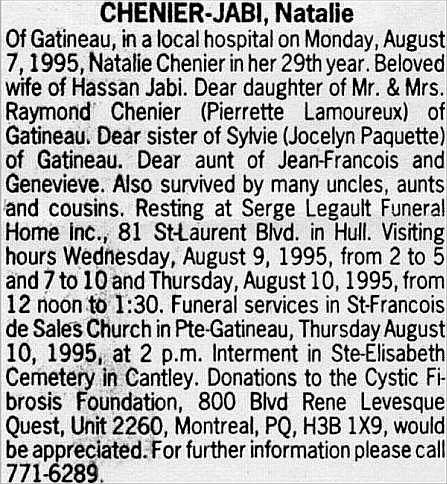 Jabi, Nathalie (Née Chénier) (1966-1995)