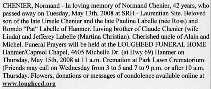 Chenier, Normand Camille (1966-2008)