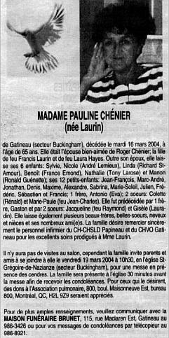 Chénier, Pauline (Née Laurin) (1939-2004)