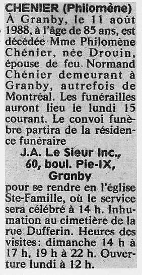 Chénier, Philomène (Née Drouin) (1903-1988)