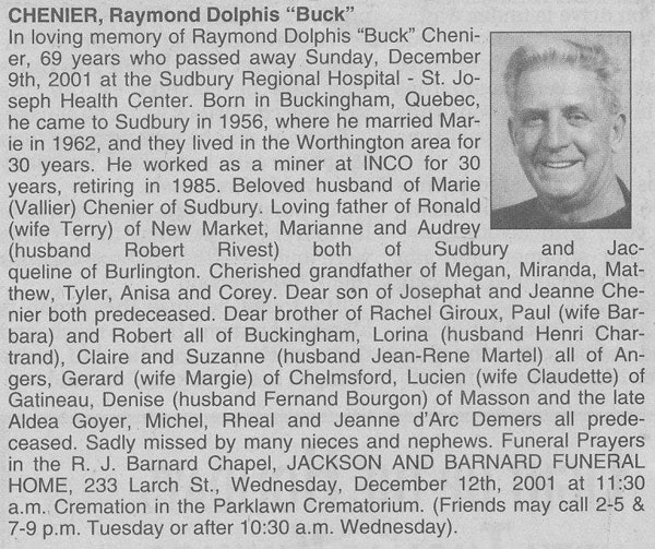 Chenier, Raymond Dolphis 'Buck" (1932-2001)