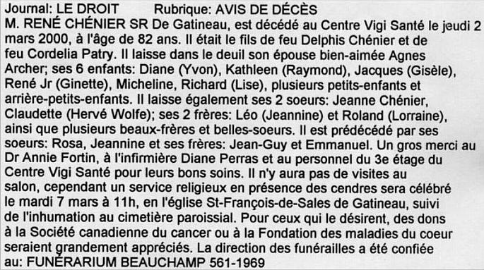 THE DESCENDANTS OF BERTRAND CHESNAY dit LAGARENNE