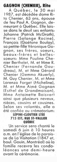 Gagnon, Rita (Née Chénier) (1924-1987)