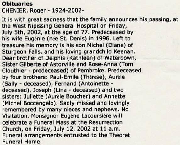 THE DESCENDANTS OF BERTRAND CHESNAY dit LAGARENNE