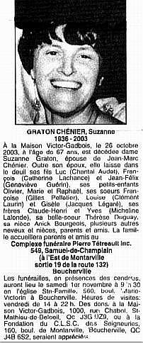 Chénier, Suzanne (Née Gratton) (1936-2003)