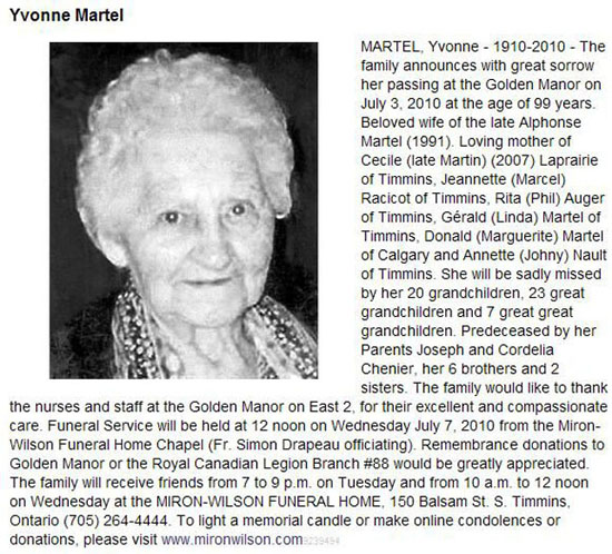 Martel, Yvonne (Née Chénier) (1911-2010)