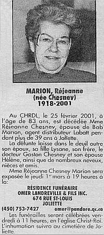 Marion, Réjeanne (Née Chesney) (1917-2001)
