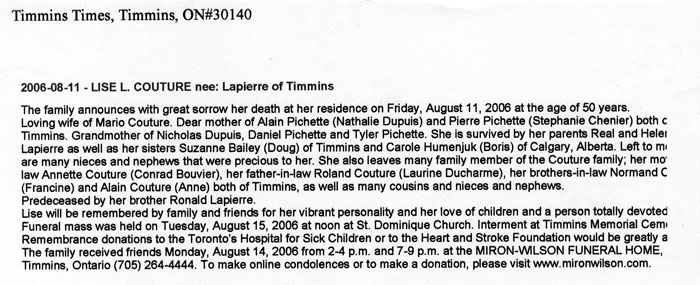 Couture, Lise (Née Lapierre) (1956-2006)
