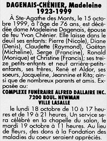 Dagenais-Chénier, Madeleine (1923-1999)