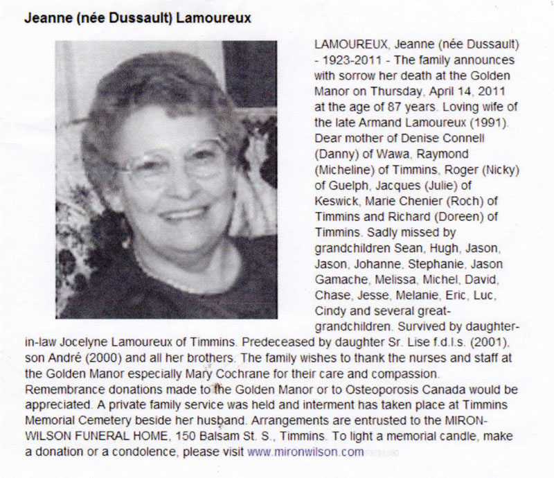 Lamoureux, Jeanne (Née Dussault) (1923-2011)