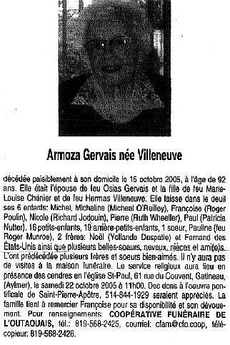 Gervais, Armoza (Née Villeneuve) (1913-2005)