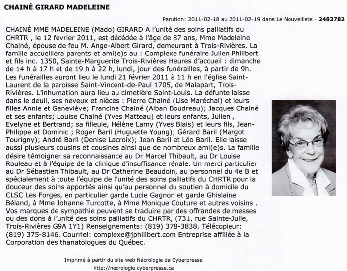 Girard, Madeleine (Mado) (Née Chainé) (1924-2011)