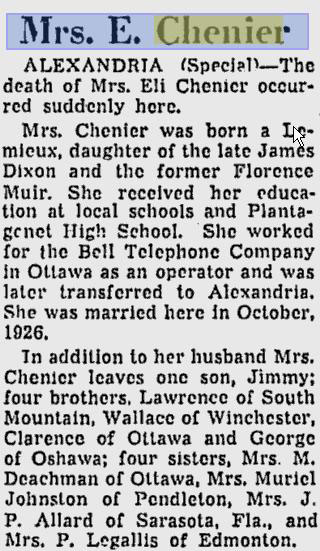 Chénier-Dixon Frances (Née Lemieux) (1902-1955)
