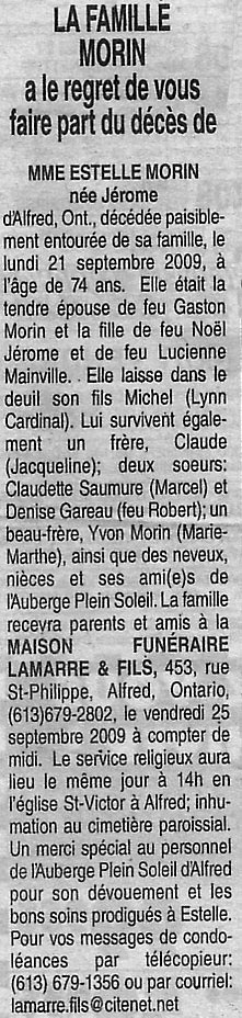Morin, Estelle (Née Jérome) (1934-2009)