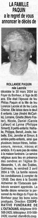 Paquin, Rollande (Née Lacroix) (1924-2004)