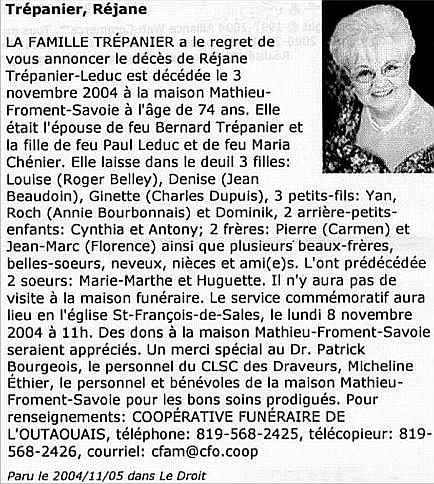 Trépanier, Réjane (Née Leduc) (1920-2004)