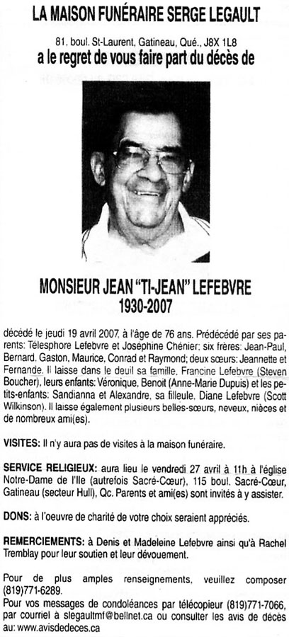 Lefebvre, Jean (Ti-Jean) (1930-2007)
