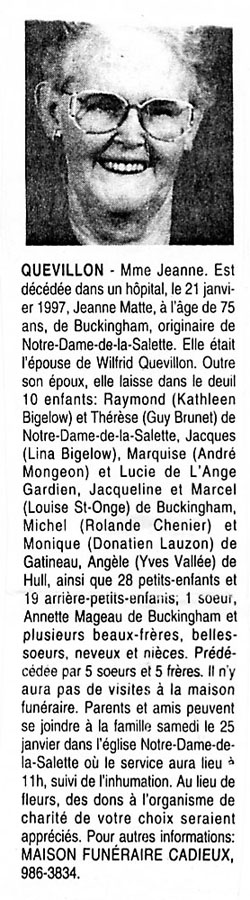Quevillon, Jeanne (Née Matté) (1922-1997)