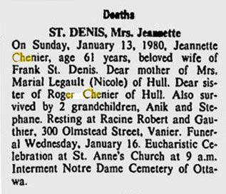 St-Denis, Jeannette (Née Chénier) (1918-1980)