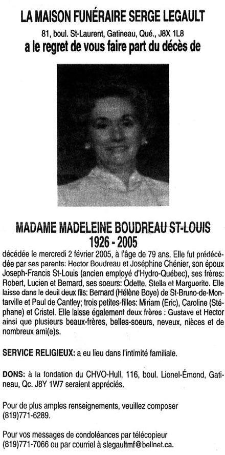 St-Louis, Madeleine (Née Boudreau) (1926-2005)