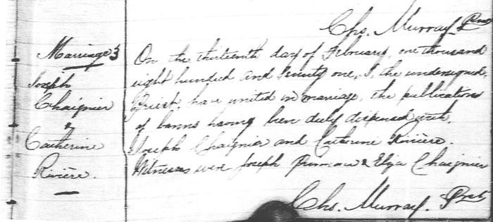 Marriage between Joseph Chaignier & Catherine Rivière