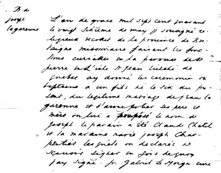 Baptême de Joseph Lagarenne (Chesnay)