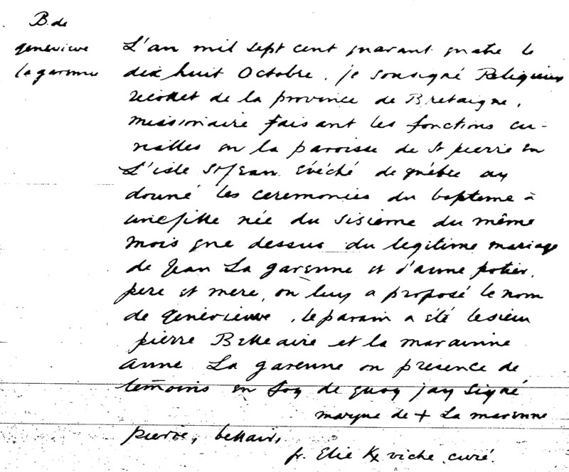 Record of baptism of Geneviève Lagarenne (Chesnay)