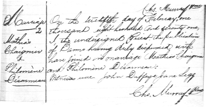 Marriage between Mathias Chaignier & Philomène Desormeaux