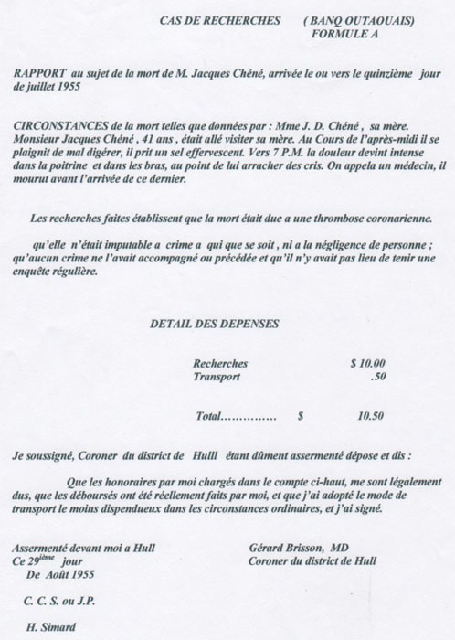 Jacques Chéné's coroner's inquest