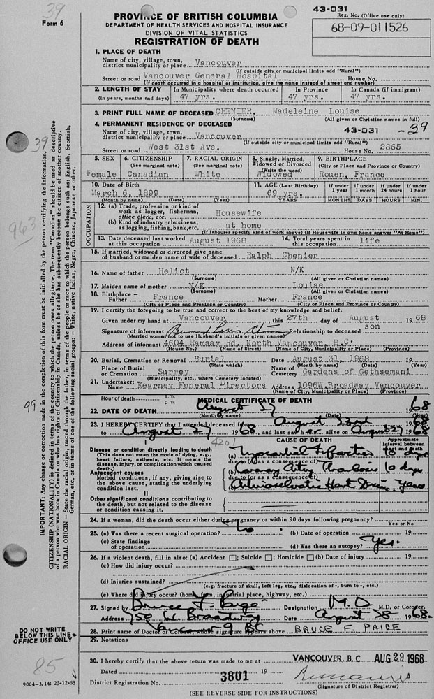 Death record of Madeleine Louise Héliot
