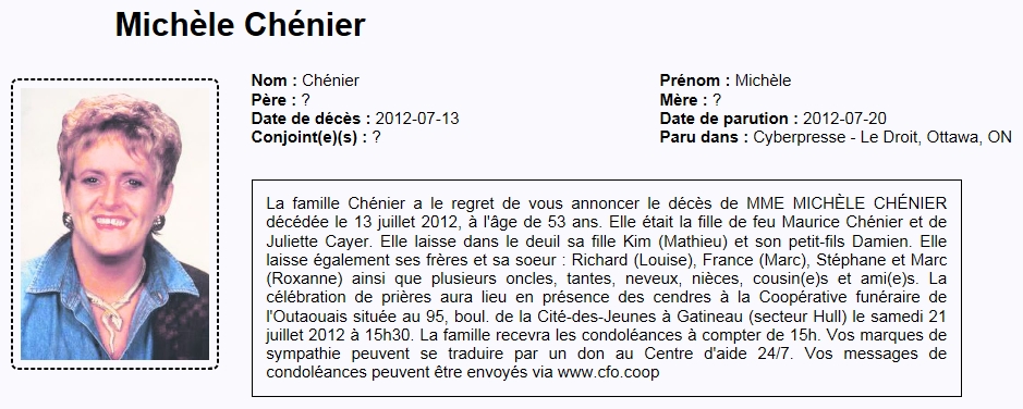 Chénier, Michele (1959-2012)