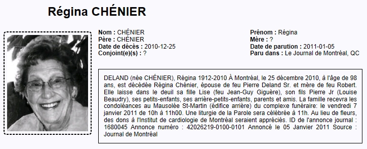 Chénier, Régina (1912-2010)