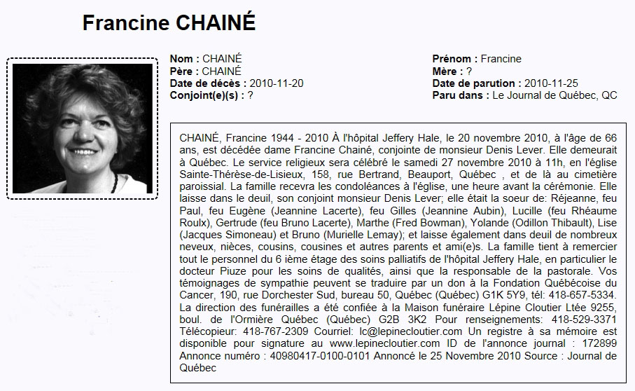 Chainé, Francine (1944-2010)
