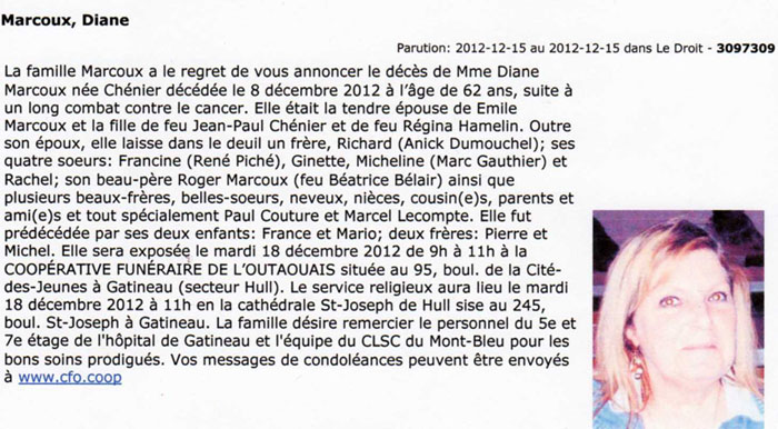 Marcoux, Diane (Née Chénier) (1940-2012)