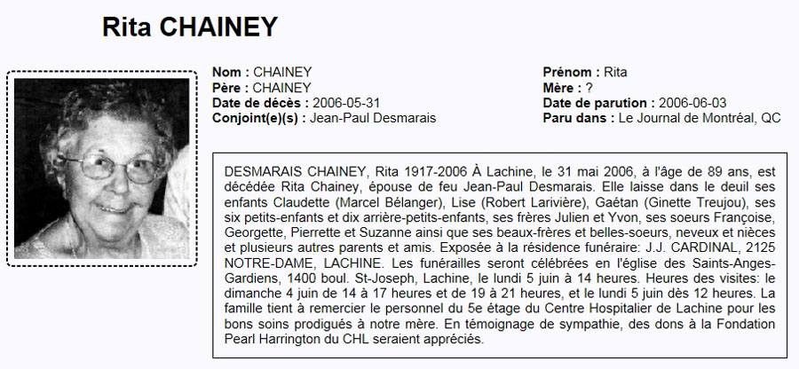 Desmarais Chainey, Rita (Née Chainey) (1917-2006)