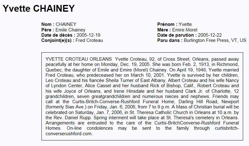 Croteau,Yvette (Née Chainey) (1913-2005)